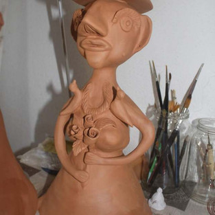 Then, the pieces are made depending on their size – depending on the type of piece, it can take a day... I can may one in a day, 2 days, a week, 2 weeks... When it’s finished, it has to dry for 15 days, it has to dry at room temperature for 15 days, at least 15 days. At the end of 15 days, the pieces are baked in a specific furnace – called a muffle furnace – they’re baked at 1000ºC. The colour of the clay reveals that it’s baked, we can now touch it, we can touch it at ease. Then, in my case, I end up... my technique is basically applying a primer coat, covering the entire piece in a white primer and then I begin to paint it and it gets a polished finish. Finally, the piece is finished.