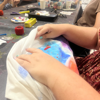 Synesthetic Textile Painting – led by Italian-British artist BSP and Ukrainian crafter Tetiana, where colours quite literally followed the rhythm of music. The point wasn’t just to give old fabrics a second life, but to sink into a meditative, art-therapeutic flow: painting without overthinking, letting the brush dance as the music played. What emerged felt like magic — fragments of fabric turned into landscapes of emotion, carrying both memory and renewal. Imagine a fabric rave, but slower, softer, and strangely healing.